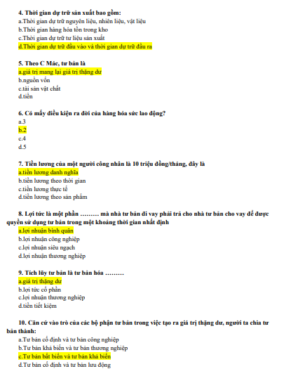 Bài tập trắc nghiệm Kinh tế chính trị của trường Đại học Bách khoa - Đại học Quốc gia Thành phố Hồ Chí Minh: