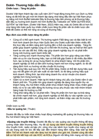 Bài thảo luận Dookki - Thương hiệu dẫn đầu | Học phần Marketing | UFM - Trường Đại học Tài chính - Marketing