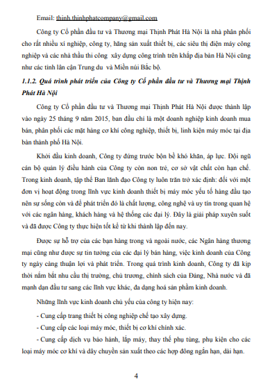 1.2. ĐẶC ĐIỂM HOẠT ĐỘNG KINH DOANH CỦA CÔNG TY CỔ PHẦN ĐẦU TƯ VÀ THƯƠNG MẠI THỊNH PHÁT HÀ NỘI