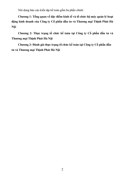 Chương 2: THỰC TRẠNG TỔ CHỨC KẾ TOÁN TẠI CÔNG TY CỔ PHẦN ĐẦU TƯ VÀ THƯƠNG MẠI THỊNH PHÁT HÀ NỘI