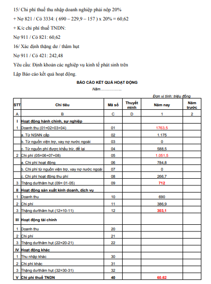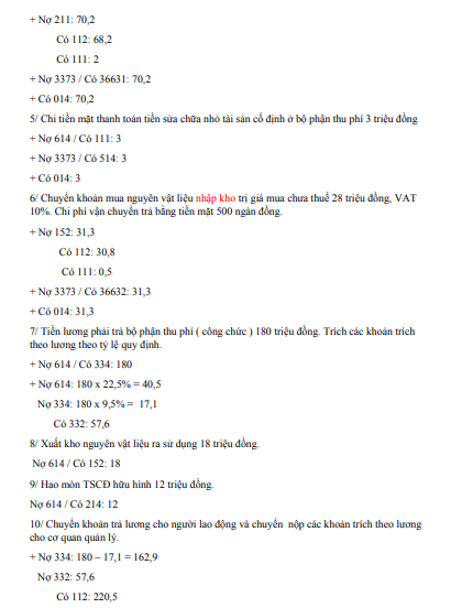 Đáp án bài tập Kế toán hành chính sự nghiệp của trường Đại học Công nghiệp TP.HCM:
