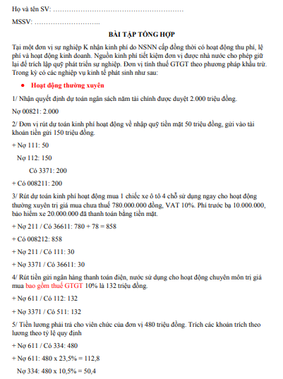 Đáp án bài tập Kế toán hành chính sự nghiệp | IUH - Trường Đại học Công nghiệp TP.HCM (2025)