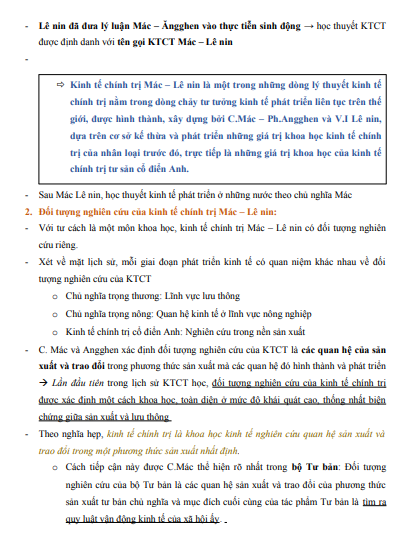 CHƯƠNG 1 : ĐỐI TƯỢNG, PHƯƠNG PHÁP NGHIÊN CỨU VÀ CHỨC NĂNG CỦA KINH TẾ CHÍNH TRỊ MÁC – LÊ NIN