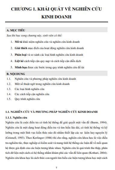 - Tên học phần: Phương pháp nghiên cứu trong kinh doanh