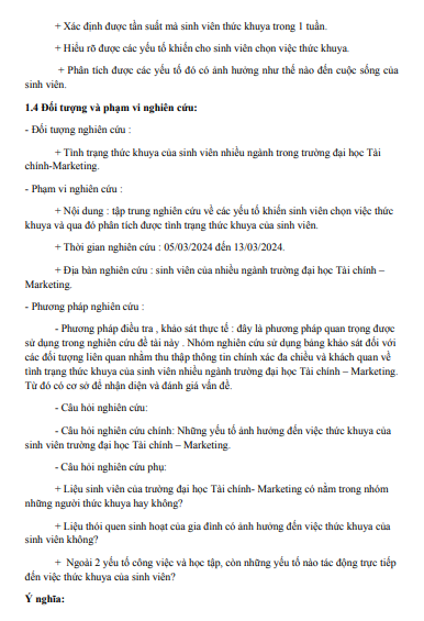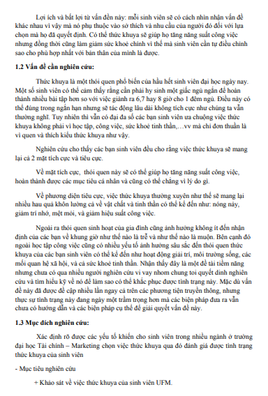 ĐỀ TÀI: "KHẢO SÁT TÌNH TRẠNG THỨC KHUYA CỦA SINH VIÊN TRƯỜNG ĐẠI HỌC TÀI CHÍNH MARKETING"