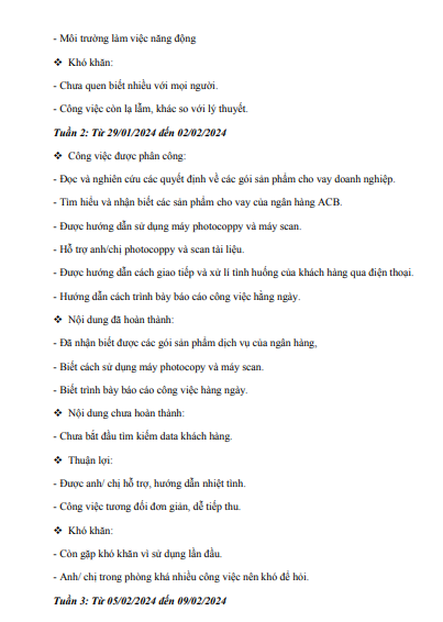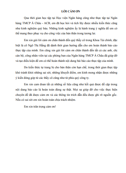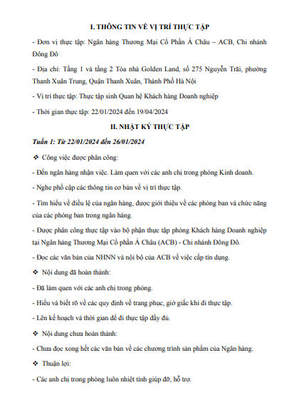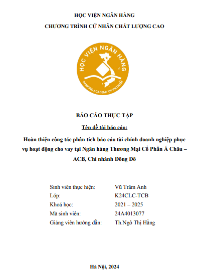 Nhật ký thực tập Hoàn thiện công tác phân tích báo cáo tài chính doanh nghiệp phục vụ hoạt động cho vay tại Ngân hàng Thương Mại Cổ Phần Á Châu - ACB, Chi nhánh Đông Đô | Học phần Tài chính doanh nghiệp | BA - Học viện Ngân hàng (2025)