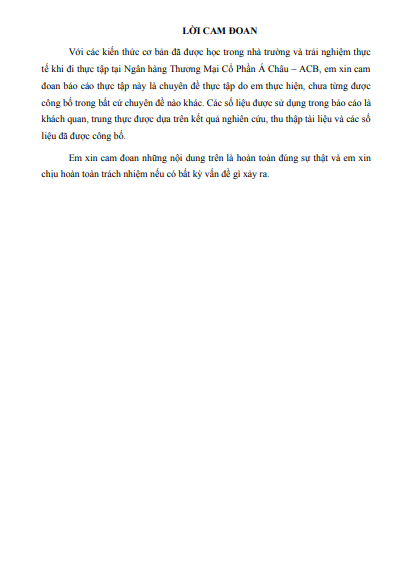 Nhật ký thực tập chuyên ngành Kế toán Tài chính 2 với đề tài Hoàn thiện công tác phân tích báo cáo tài chính doanh nghiệp phục vụ hoạt động cho vay tại Ngân hàng Thương Mại Cổ Phần Á Châu - ACB, Chi nhánh Đông Đô của sinh viên trường Học viện Ngân hàng giúp bạn tham khảo và hoàn thành tốt bài học phần của mình đạt kết quả cao.