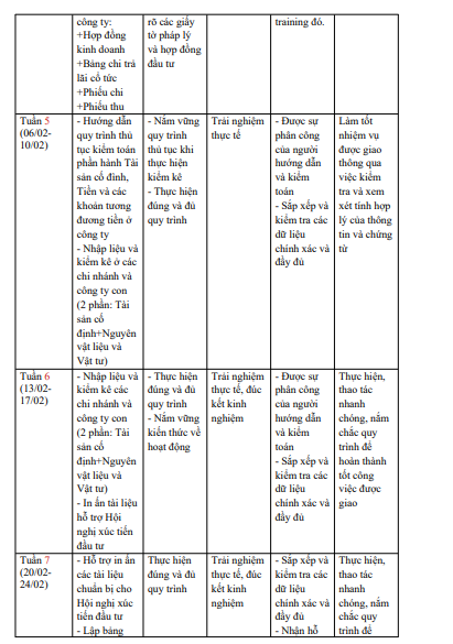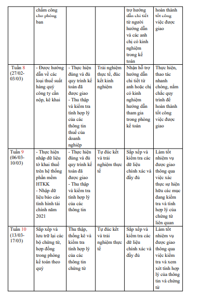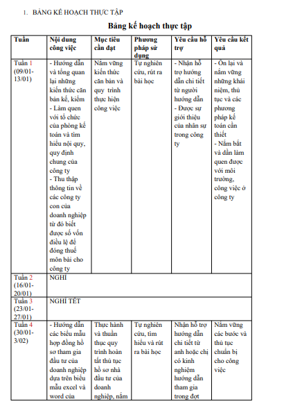 1. BẢNG KẾ HOẠCH THỰC TẬP