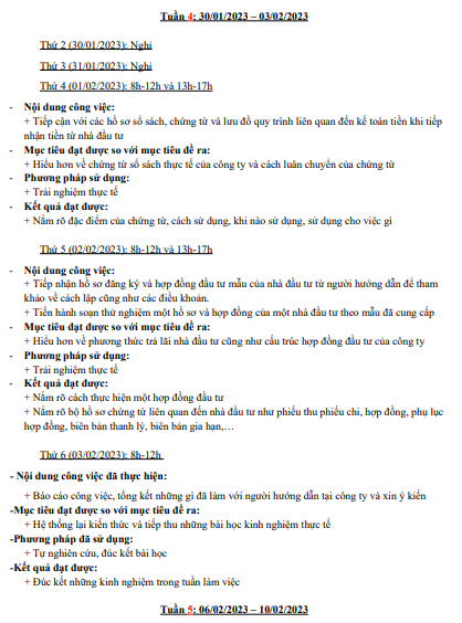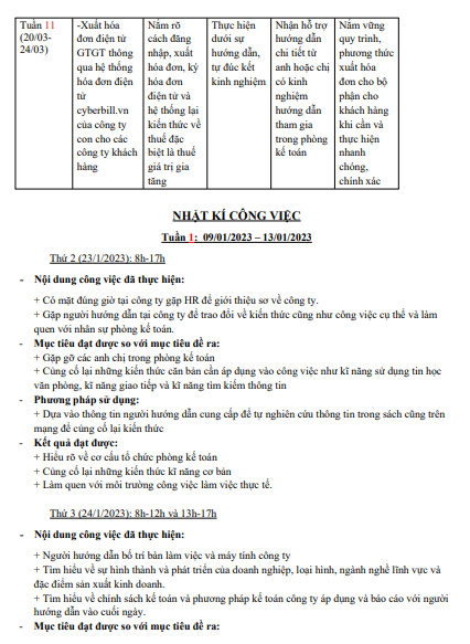 Nội dung của bài Nhật ký thực tập gồm: