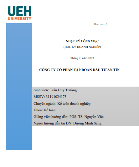 Nhật ký thực tập Kế toán tại Công ty Cổ phần Tập đoàn Đầu tư An Tín | Học phần Kế toán doanh nghiệp | UEH - Trường Đại học Kinh tế Thành phố Hồ Chí Minh (2025)