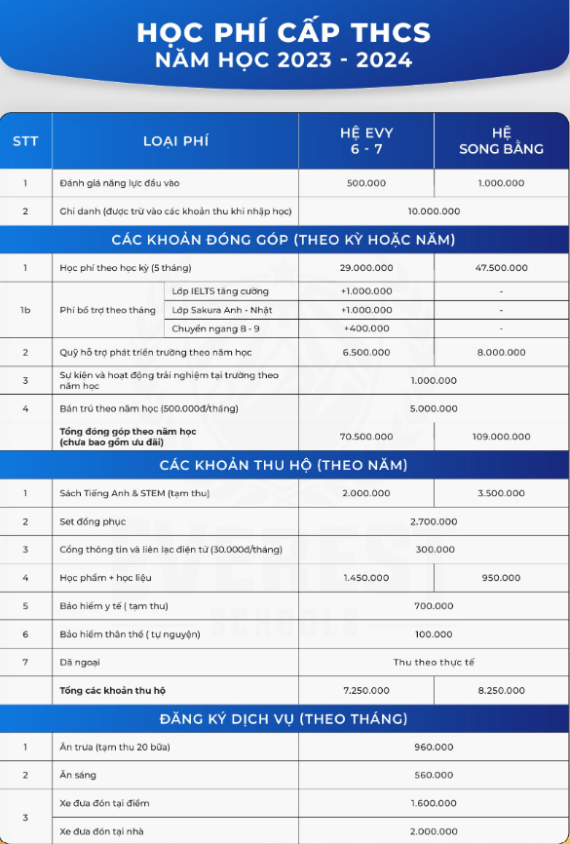 Với việc xây dựng và hình thành hiệu quả cho sự phát triển đồng đều về tri thức - thể chất – khí chất, Trường Tiểu học, trung học cơ sở và trung học phổ thông Everest luôn đồng hành, giúp đỡ các bạn học sinh. Tìm hiểu mức học phí chia theo các hệ và các cấp theo số liệu năm 2023-2024: