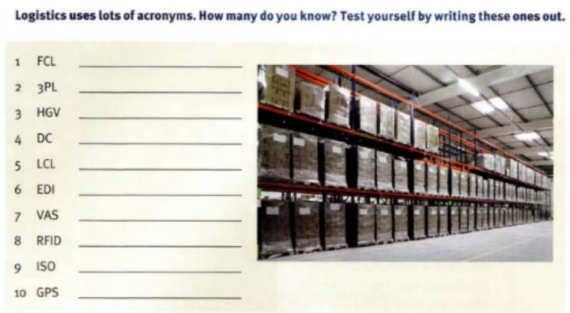 Với mỗi unit, bạn sẽ bắt đầu làm quen với phần “Starter”. Phần này sẽ bao gồm từ vựng, bài tập trong ngành Logistics. Ví dụ: Unit 1: Introduction to Logistics, phần Starter sẽ bao gồm 13 phần bài tập, với các dạng bài có yêu cầu khác nhau. Sau khi hoàn thành các bài tập này, bạn sẽ tự rút ra được phần từ vựng chính trong unit này.