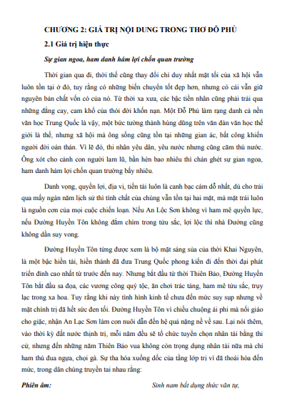 CHƯƠNG 2: GIÁ TRỊ NỘI DUNG TRONG THƠ ĐỖ PHỦ