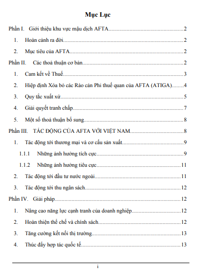 I. GIỚI THIỆU KHU VỰC MẬU DỊCH AFTA