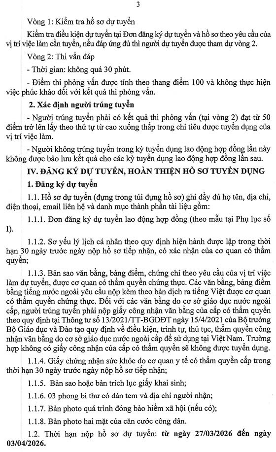 Thời hạn nộp hồ sơ dự tuyển: từ ngày 27/03/2026 đến ngày 03/04/2026.