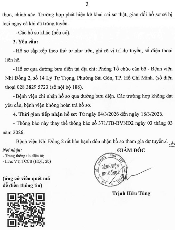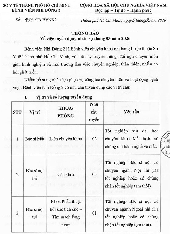 Bệnh viện Nhi Đồng 2, TP. HCM tuyển dụng nhân sự 2026