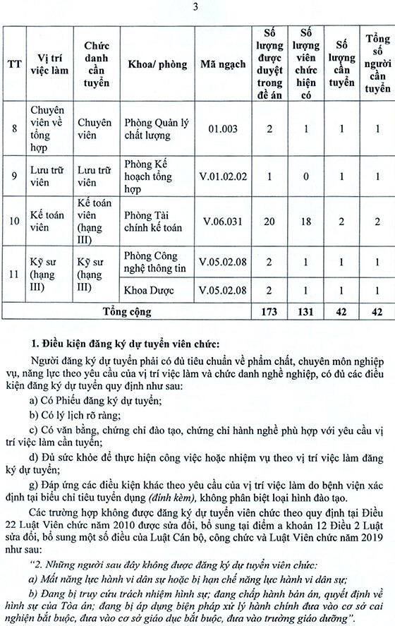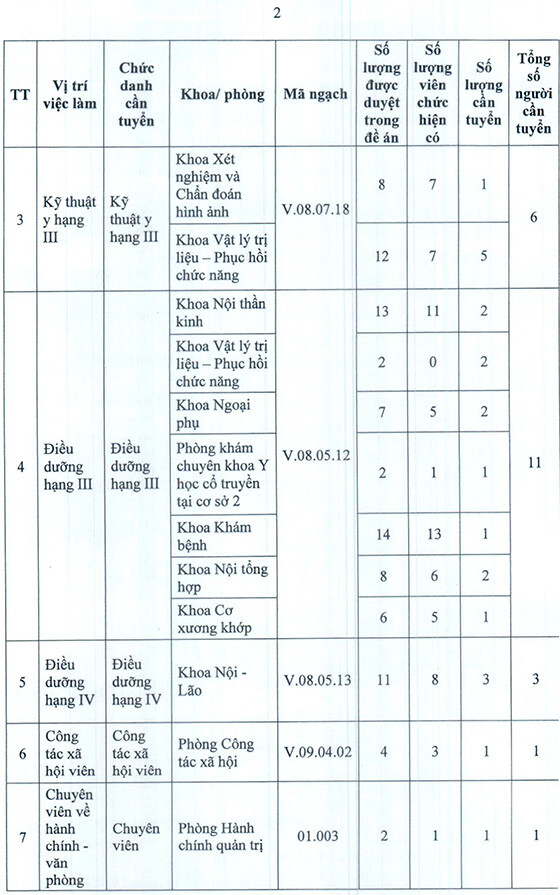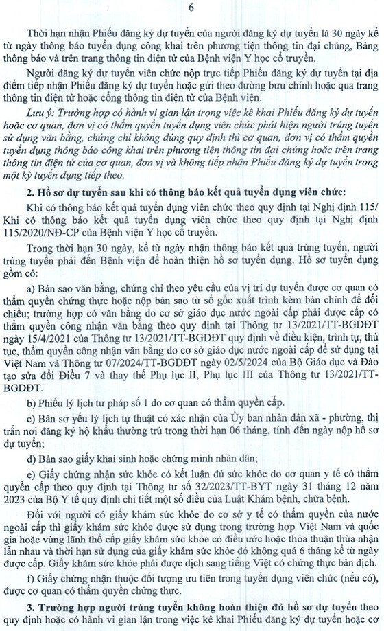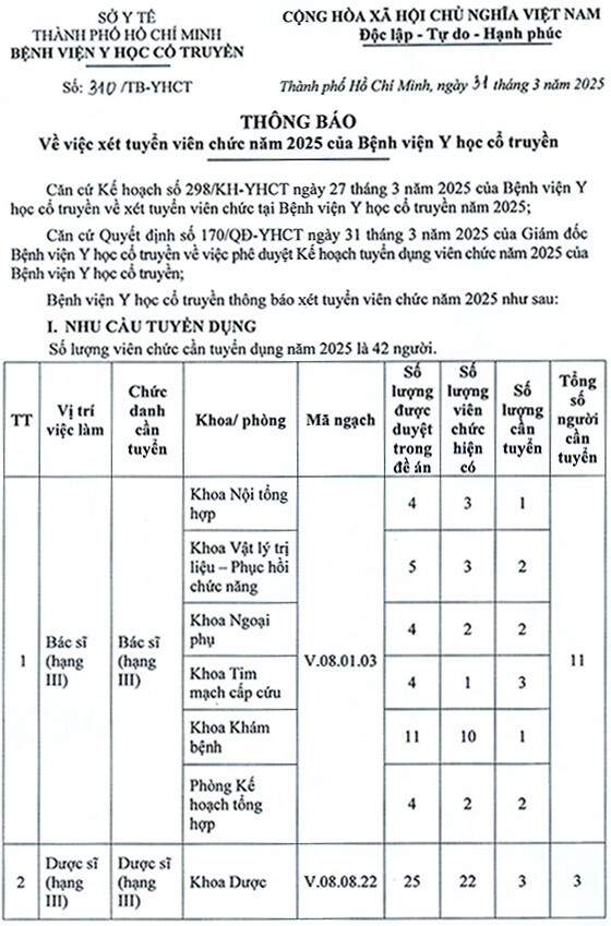 Bệnh viện Y học cổ truyền thông báo xét tuyển viên chức năm 2025 như sau: