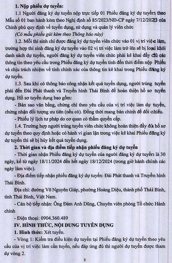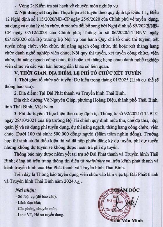 Đài Phát thanh và Truyền hình Thái Bình thông báo tuyển dụng viên chức vào làm việc tại Đài Phát thanh và Truyền hình Thái Bình năm 2024, cụ thể như sau: