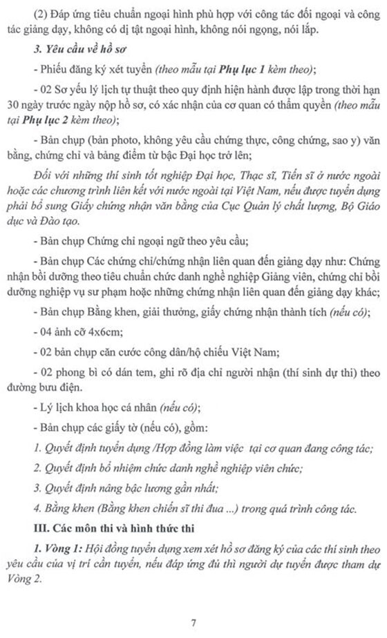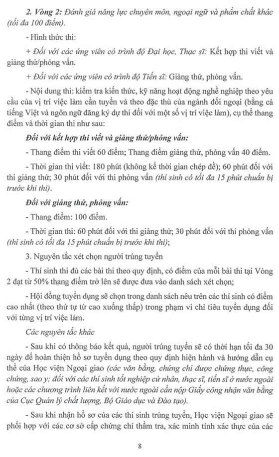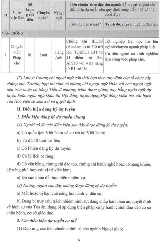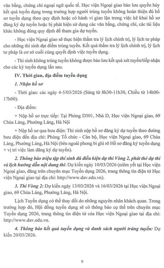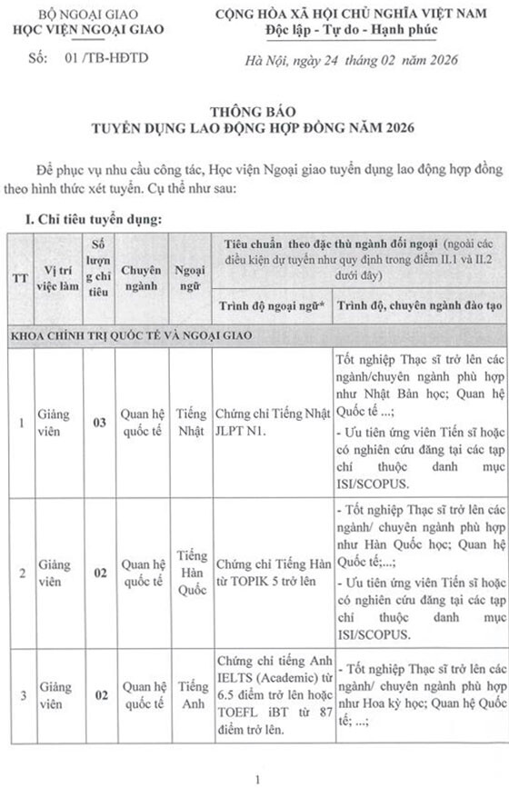 Học viện Ngoại giao tuyển dụng lao động hợp đồng theo hình thức xét tuyển. Cụ thể như sau: