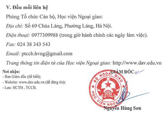– Địa điểm: Tại Phòng D301, Nhà D, Học viện Ngoại giao, 69 Chùa Láng, Phường Láng, Hà Nội