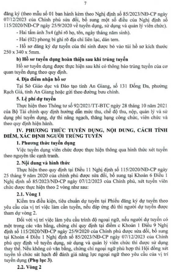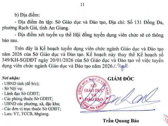 – Địa điểm: phòng Tổ chức cán bộ, Sở Giáo dục và Đào tạo An Giang, số 131 đường Đống Đa, phường Rạch Giá, tỉnh An Giang.