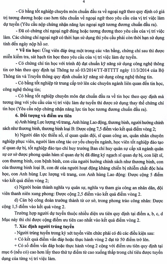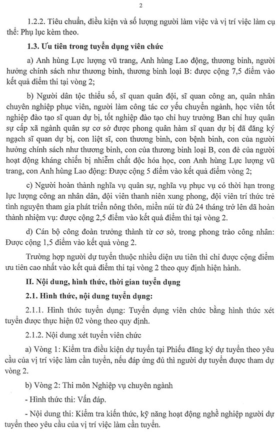 Hình thức tuyển dụng: Việc tuyển dụng được thực hiện thông qua hình thức xét tuyển. Việc xét tuyển được tiến hành theo 2 vòng.