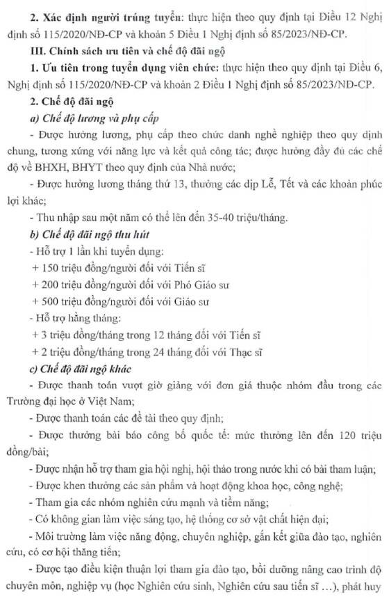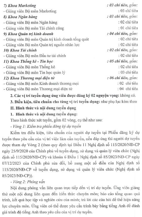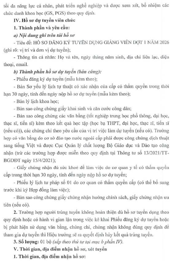 Thông tin chi tiết về vị trí tuyển dụng, hồ sơ tuyển dụng, ứng viên xem tại: Thông báo tuyển dụng giảng viên đợt 1 năm 2026