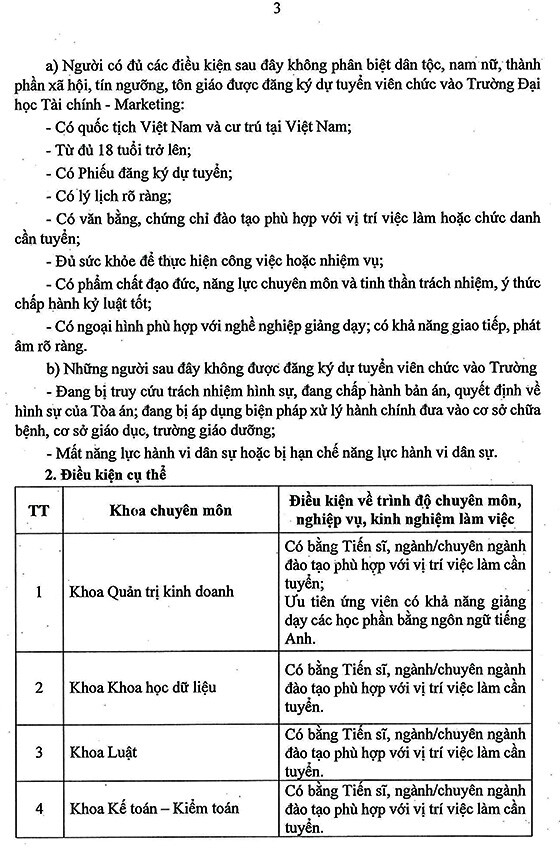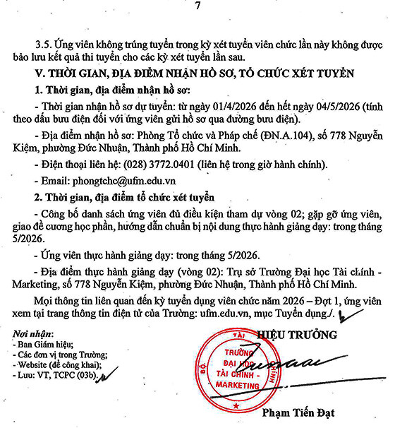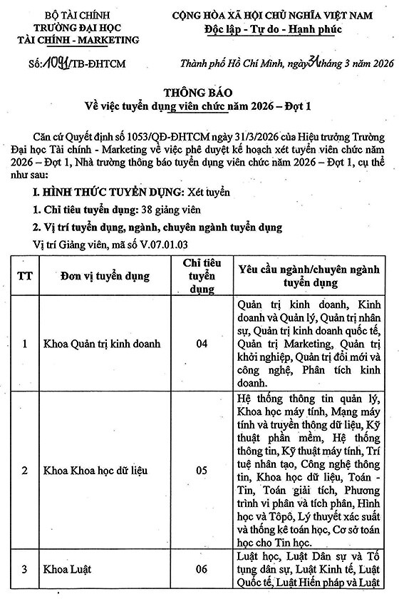 rường Đại học Tài chính – Marketing tuyển dụng viên chức năm 2026 – Đợt 1, như sau: