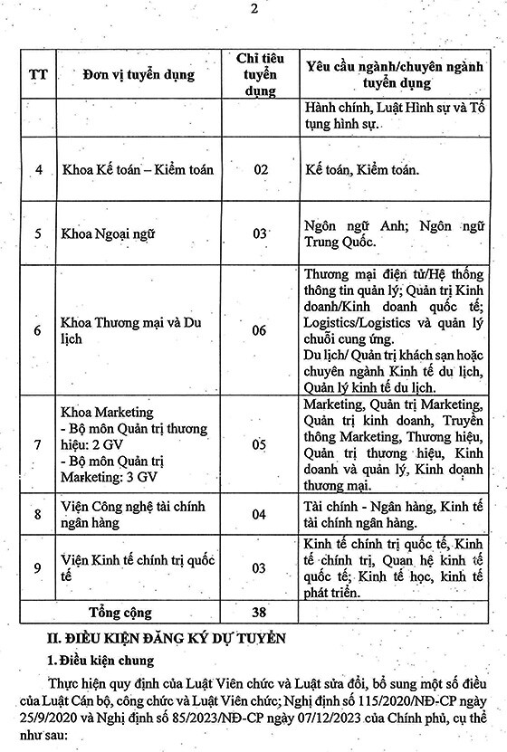 1. Số lượng tuyển dụng: 38 chỉ tiêu