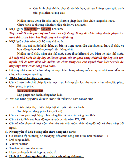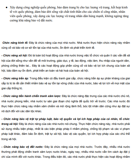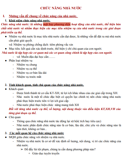 Tóm tắt lý thuyết Chức năng nhà nước