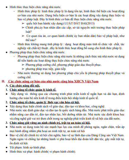 II. Các chức năng cơ bản của nhà nước cộng hòa XHCN Việt Nam