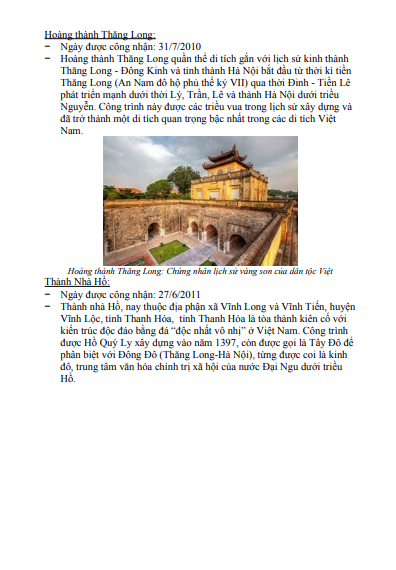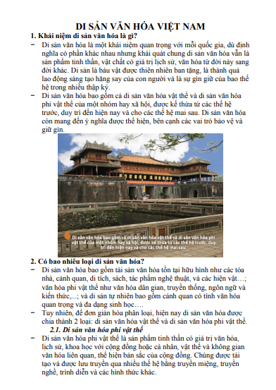 Tóm tắt lý thuyết Di sản văn hóa Việt Nam