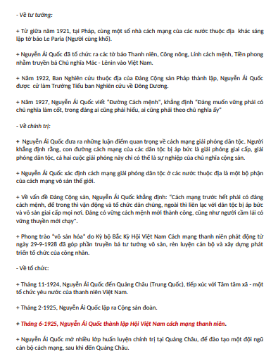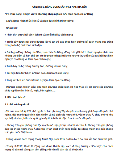 Tóm tắt kiến thức Lịch sử Đảng bao gồm những nội dung sau: