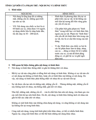 TÍNH CẶP ĐÔI CỦA PHẠM TRÙ: NỘI DUNG VÀ HÌNH THỨC