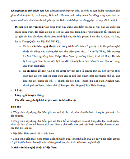 Tóm tắt kiến thức Tài nguyên du lịch nhân văn: Các di sản văn hóa Việt Nam thuộc Học phần Tổng quan du lịch bao gồm những nội dung sau:
