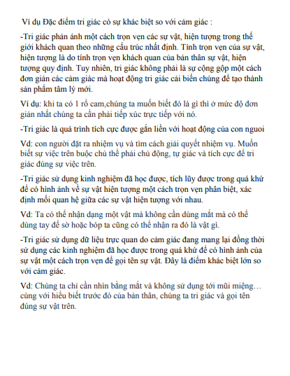 1. Đặc điểm tri giác có sự khác biệt so với cảm giác