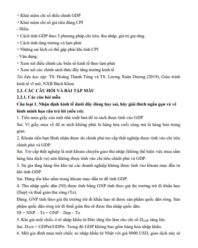 Tóm tắt lý thuyết và Đáp án bài tập Chương 2: Đo lường các biến số kinh tế vĩ mô