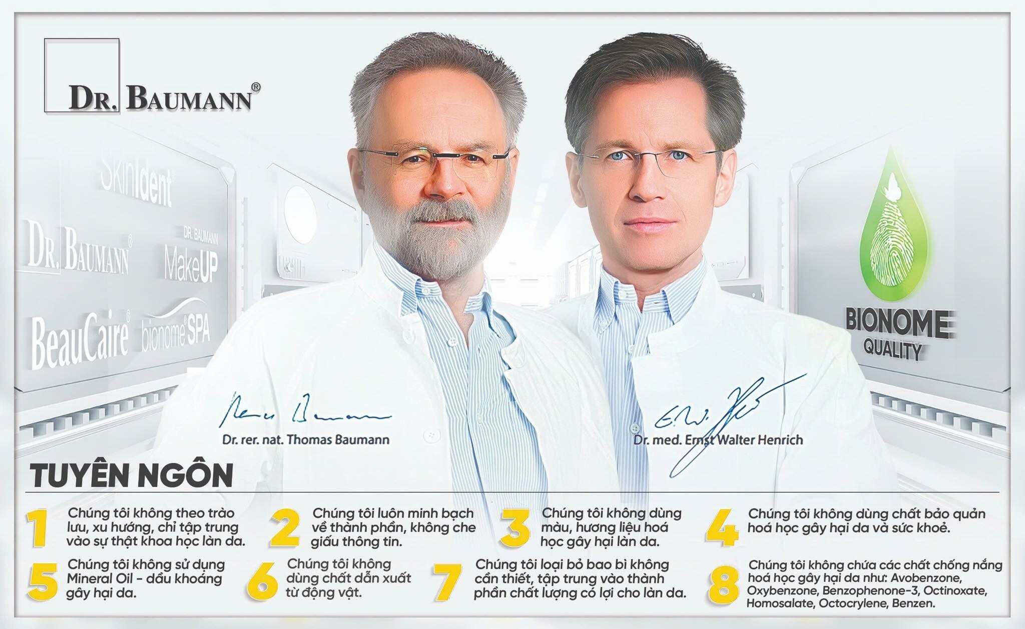Công Ty TNHH Dược Mỹ Phẩm D&D là hệ thống Dược Mỹ Phẩm uy tín hàng đầu tại Châu Âu và thế giới đạt chuẩn Thụy Sỹ - Đức. Suốt 30 năm, Dr Baumann là thương hiệu tiên phong đạt tiêu chuẩn chất lượng Bionome, được đích thân 2 nhà bác học khoa học vĩ đại: Dr Baumann (chuyên gia da liễu, dược sỹ) và tiến sĩ y khoa Dr Henrich (chuyên gia da liễu, thành phần học) nghiên cứu và phát triển trên từng sản phẩm. Hệ thống sản phẩm Dr Baumann đã có mặt hơn 40 quốc gia và có hơn 300 sản phẩm bao gồm các sản phẩm an toàn từ trẻ nhỏ, dầu gội, trang điểm, chăm sóc da... Hệ thống Dr Bauamnn đề cao tính nhân văn và đạo đức trong kinh doanh thông qua triết lý: Thân thiện với môi trường, thân thiện với động vật, và thân thiện