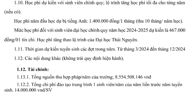 B. Học phí Khoa Quốc tế - Đại học Thái Nguyên năm học 2023 - 2024