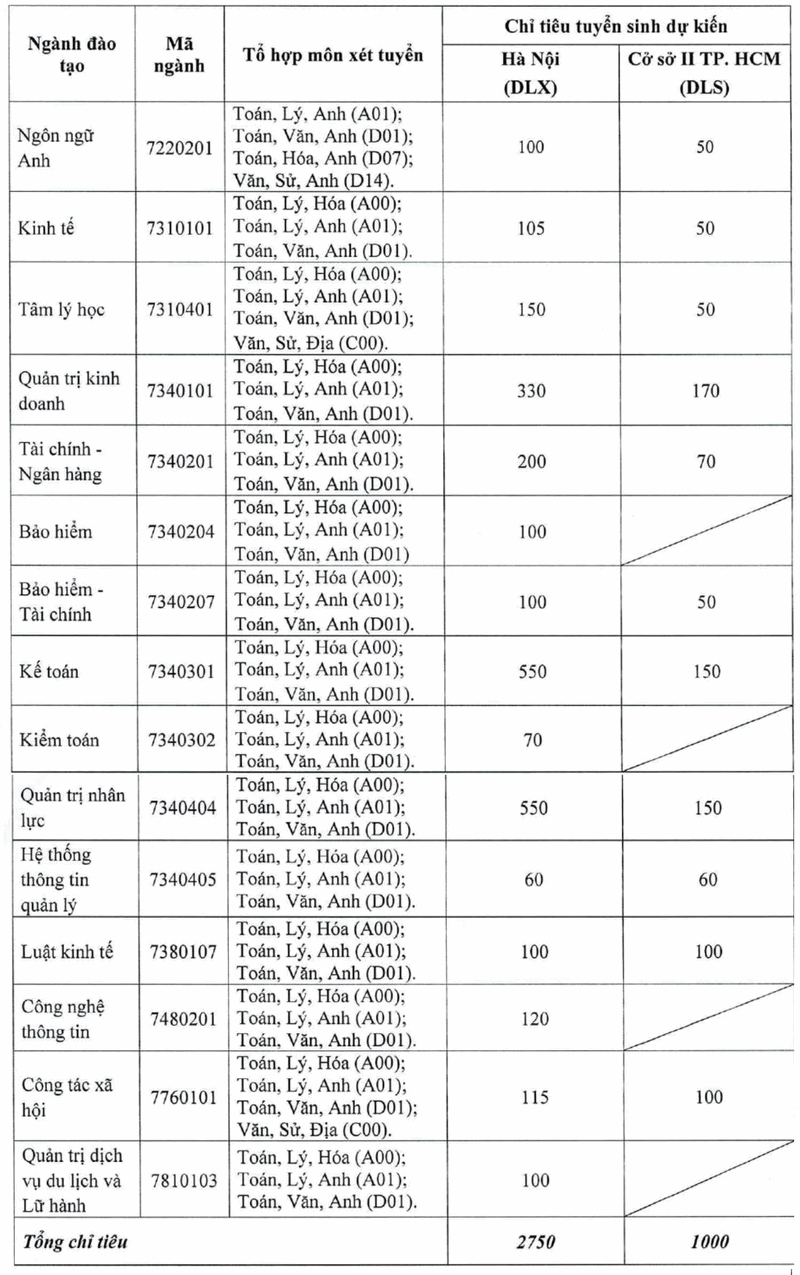 | 3 | 7310202 | Xây dựng Đảng và chính quyền nhà nước | A01; C00; C03; D01 | 22.24 | Nam, phía Nam |