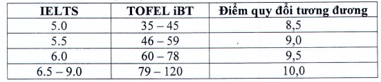 Bảng điểm quy đổi các chứng chỉ tiếng Anh Quốc tế được Bộ Giáo dục và Đào tạo công nhận