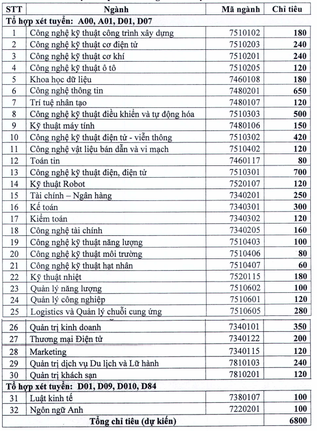 Trường Đại học Điện lực dự kiến tuyển sinh theo 04 phương thức như sau: