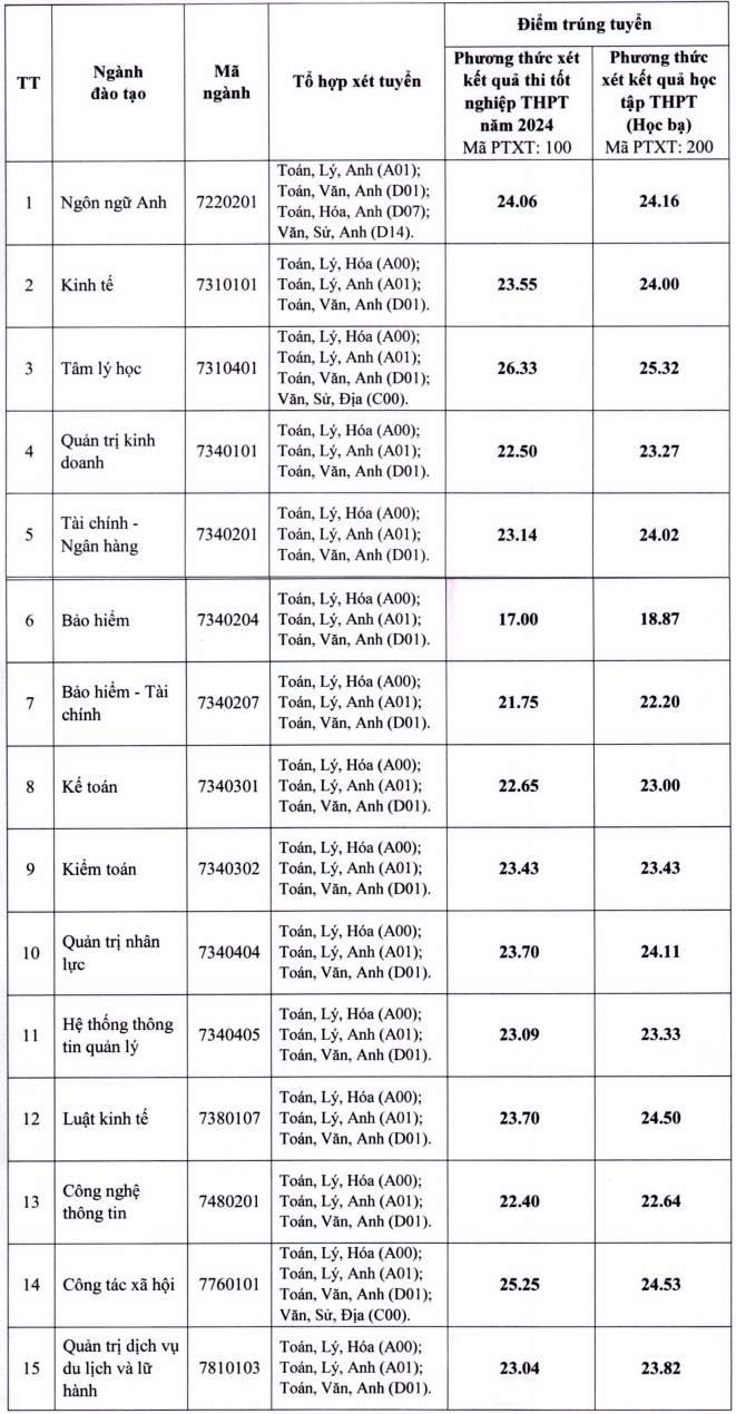 | 11 | 7340404 | Quản trị nhân lực | A00; A01; D01 | 23.3 | |