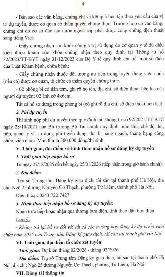 Trung tâm Đăng ký giao dịch, tải sản tại thành phố Hà Nội thuộc Cục Đăng ký giao dịch bảo đảm và Bồi thường nhà nước, Bộ Tư pháp tổ chức tuyển dụng viên chức năm 2025 cụ thể như Sau: