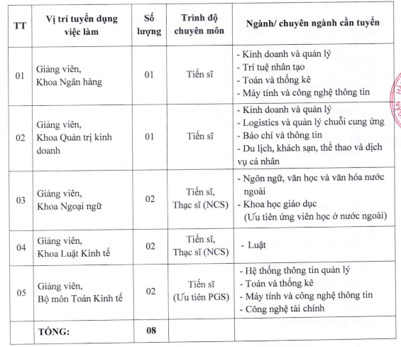 Trường Đại học Ngân hàng Thành phố Hồ Chí Minh thông báo tuyển dụng viên chức đợt 1 năm 2024 như sau: