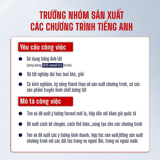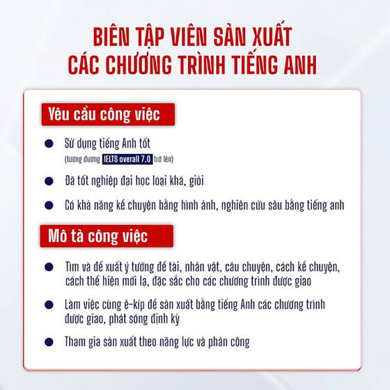 👉Vị trí biên tập viên sản xuất các chương trình tiếng Anh