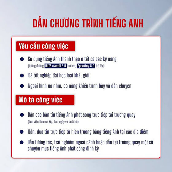 👉Vị trí dẫn chương trình tiếng anh