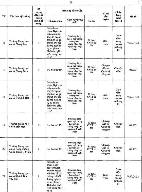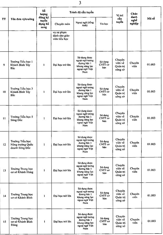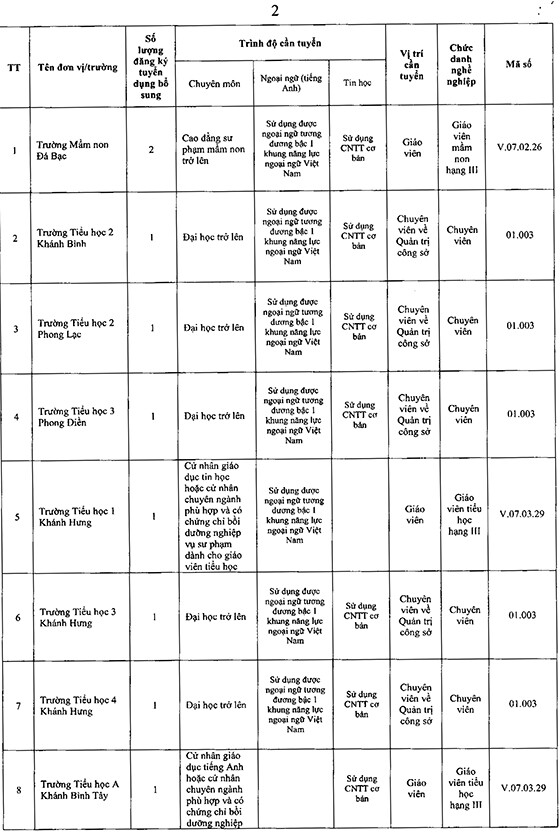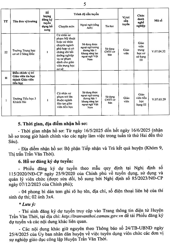 >>>>>Xem thêm: UBND huyện Trần Văn Thời, Cà Mau tuyển dụng viên chức các đơn vị sự nghiệp giáo dục năm 2025