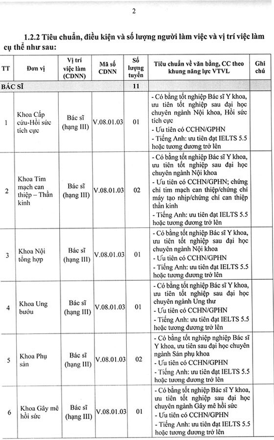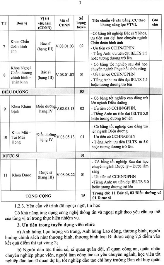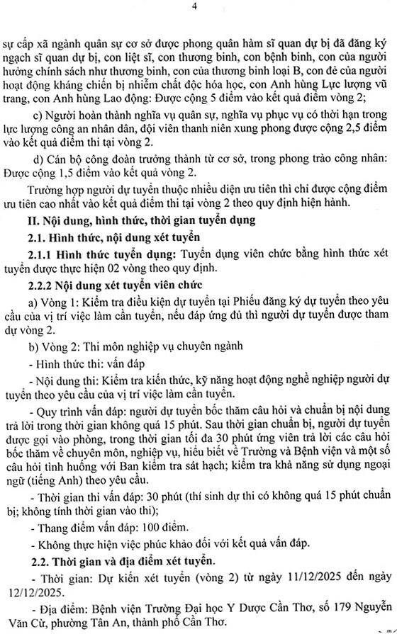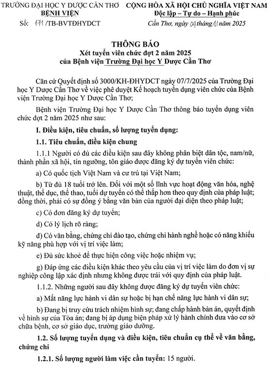 Bệnh viện Trường Đại học Y Dược Cần Thơ thông báo tuyển dụng viên chức đợt 2 năm 2025 như sau: