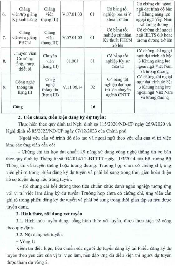 1. Số lượng tuyển dụng: 16 chỉ tiêu